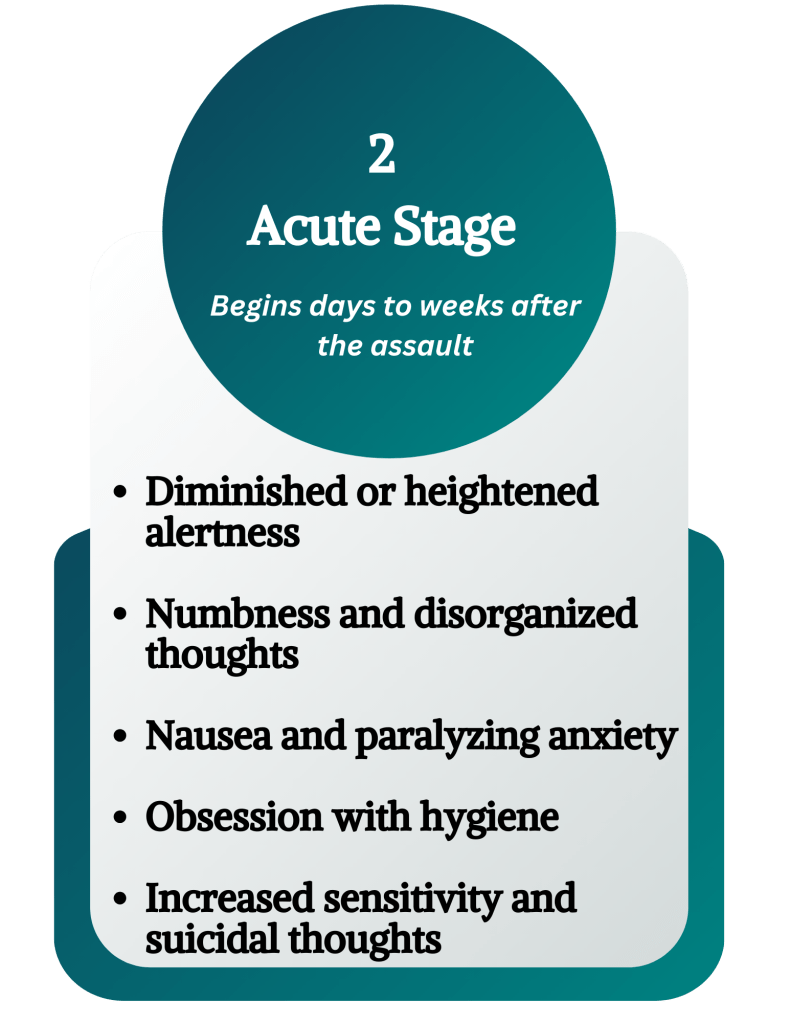 Survivors of sexual violence often undergo a series of stages, each marked by distinct symptoms and emotions, as they navigate the aftermath of a traumatic experience. These stages provide a framework for understanding the complex journey survivors undertake in their efforts to heal and reclaim their lives after experiencing sexual violence.